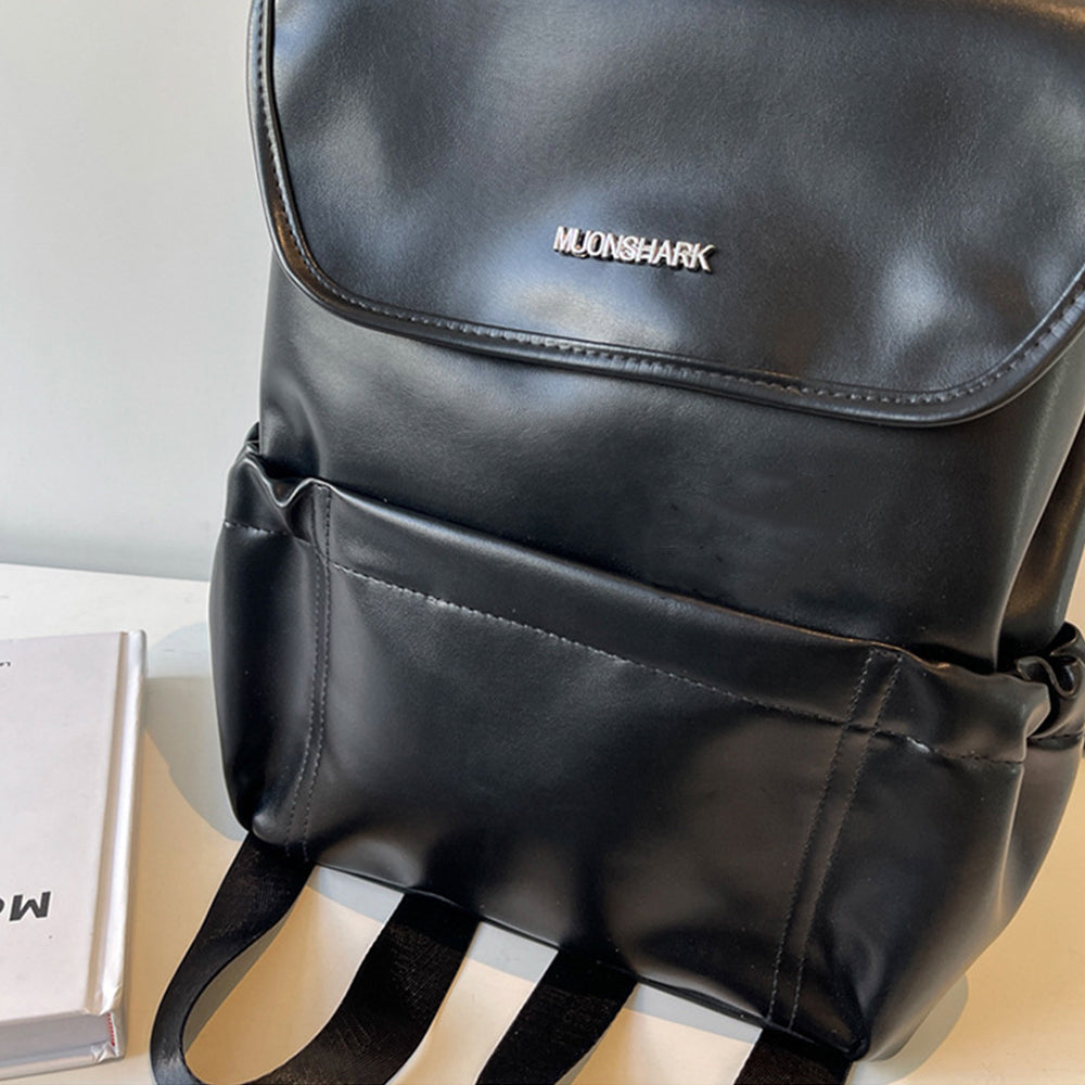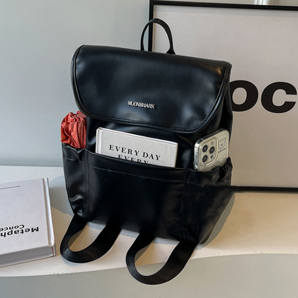 Dollcini Divatos Nagy Kapacitású Női Hátizsák – PU Bőrpántos, Minimalista, Iskolába, Munkába és Utazáshoz, Fényes Fekete