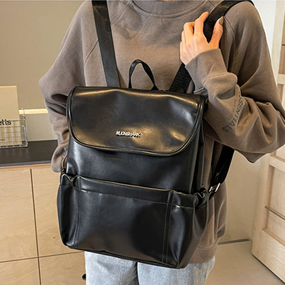 Dollcini Bright Black női hátizsák - divatos PU bőr, nagy kapacitású, alkalmas iskolába, munkába és utazáshoz