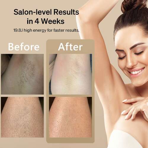 - Akár 19,8 J IPL energia: Nagy energia, 560-1200 nm hullámhossz, mindössze 4 hét alatt akár 93%-kal csökkenti a szőrszálakat.