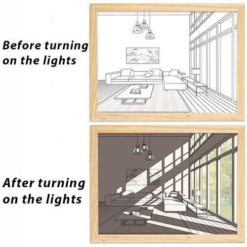 Környezetbarát tömörfa keretes fényfestmény: Fenntartható anyagokból készült, stílusos dizájnnal.