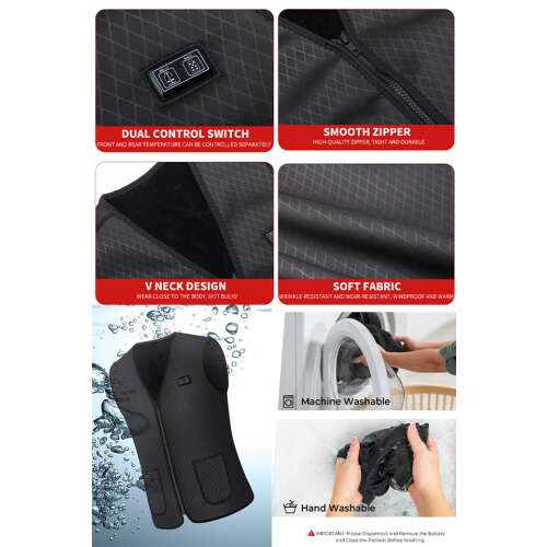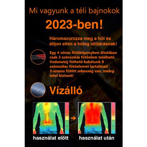 - 9 Fűtőelem: 9 szénszálas fűtőelem elosztva a nyakon, vállakon, elülső részen és a teljes háton a teljes melegség érdekében.