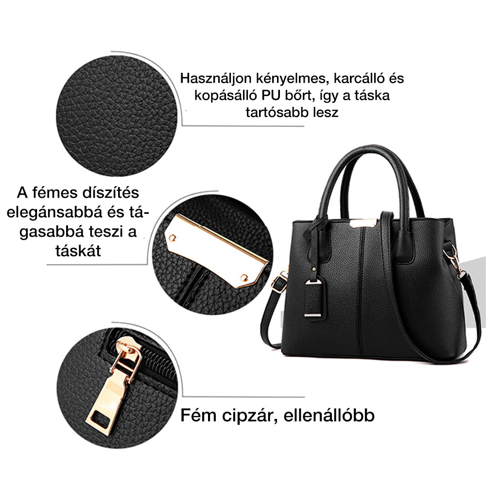 - Kiváló minőségű PU bőr és poliészter bélés, amely puha tapintású, mégis strapabíró.