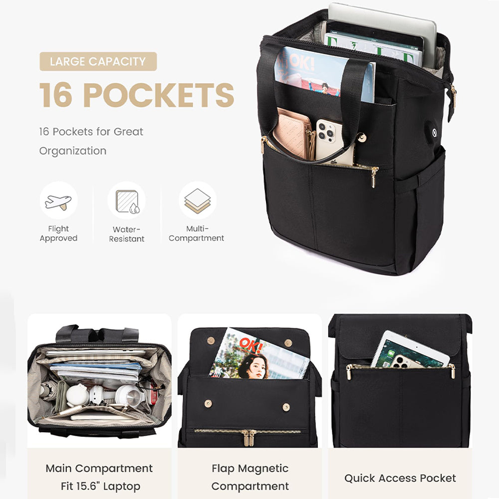 A 45x35x15 cm-es hátizsákba könnyedén elfér egy 15,6 hüvelykes laptop, 11 hüvelykes tablet, telefontöltő, dokumentumok, kulacs, esernyő stb. Több mint 20 zseb gondoskodik a tökéletes rendszerezésről a mindennapi használatra és az utazásra.