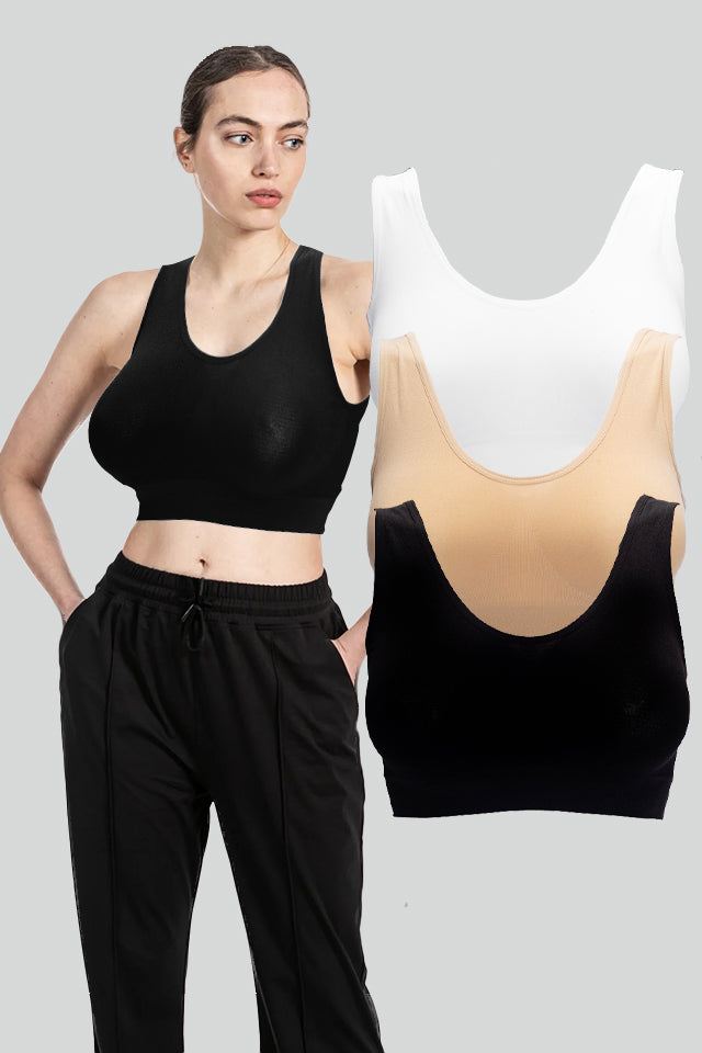 Dollcini Varrás Nélküli Női Sportmelltartó - 95% Pamut, Kényelmes, 3 db-os Csomag
