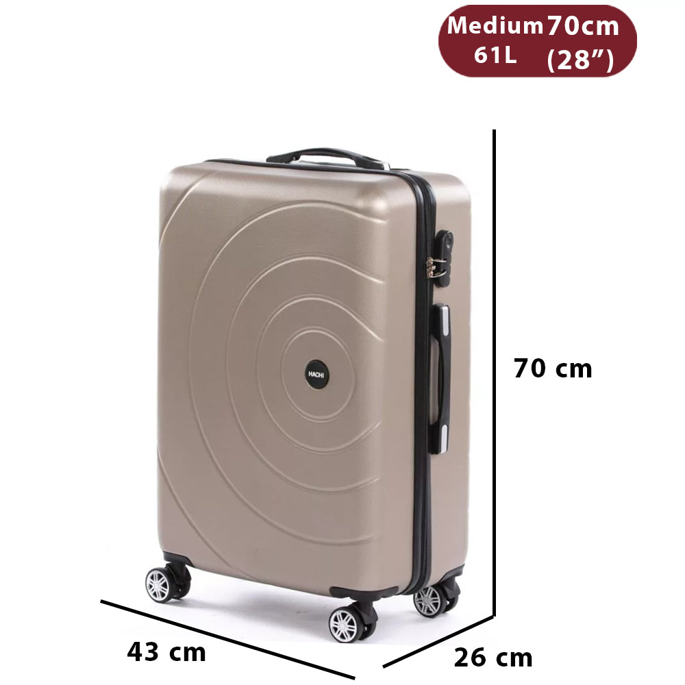 Ez a bőrönd keményfalú, ütésálló ABS anyagból készült, mely biztosítja a tartósságot és védelmet az utazás során. A méretek kerékkel és fogantyúkkal együtt értendők.