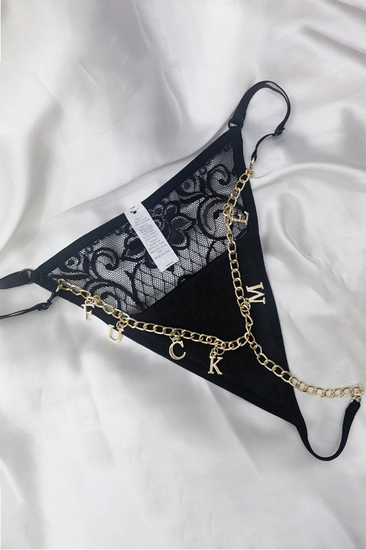 Dollcini Szexi Csipkés Tanga – Arany Betűs Lánccal