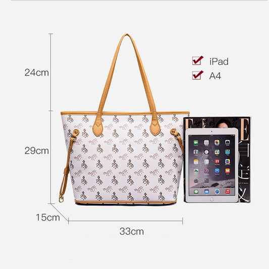 Dollcini Mintás Női Műbőr Tote Táska – Lovas Motívummal, Fehér