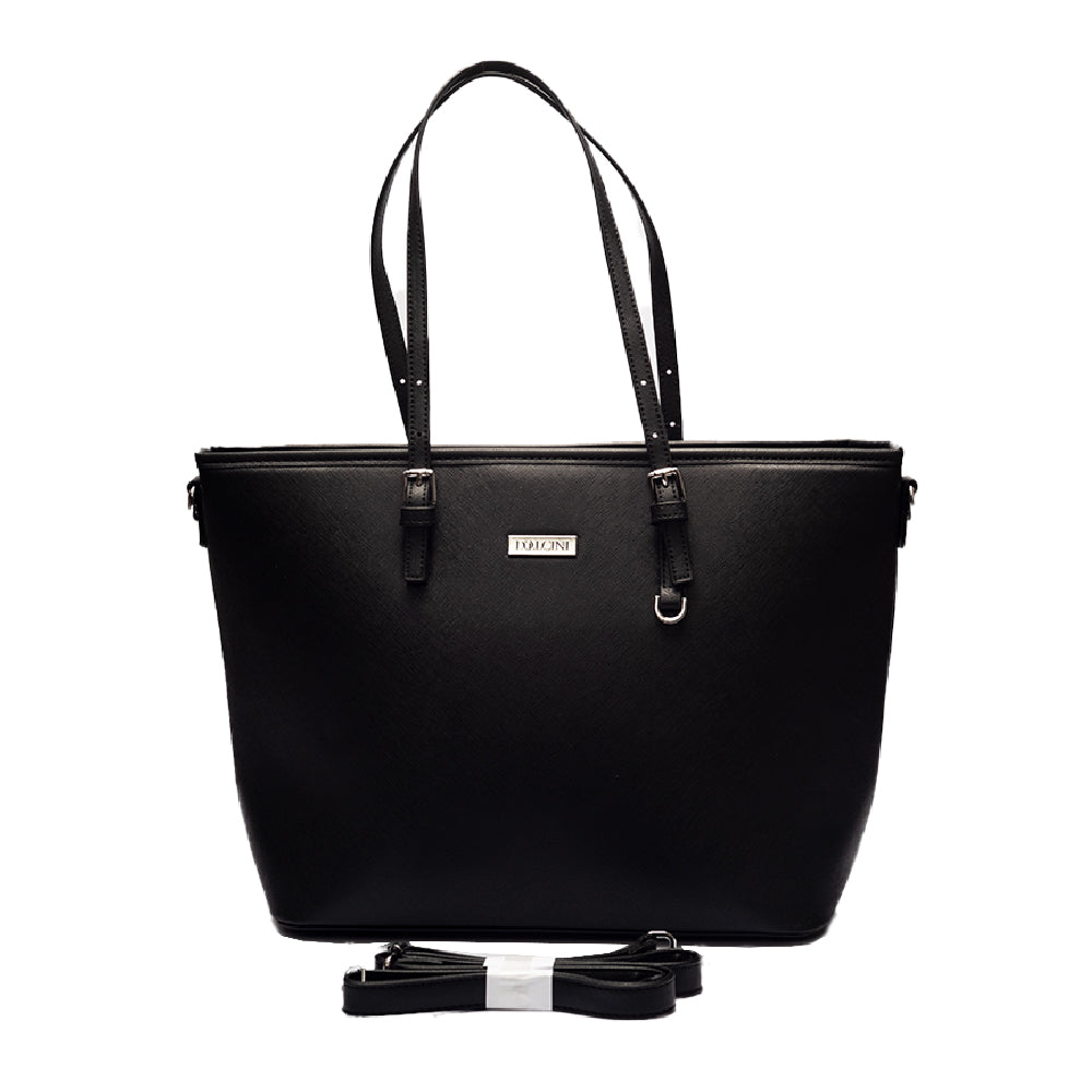 A Dollcini klasszikus fekete nagyméretű női kézitáska a letisztult elegancia és a praktikusság tökéletes kombinációja. Prémium műbőrből készült, amely vízlepergető és kopásálló, belsejében pedig jól rendszerezhető rekeszek segítik a mindennapi használatot. Tágas kialakítása lehetővé teszi laptop, dokumentumok, pénztárca és más kiegészítők kényelmes tárolását. Elegáns részletei és minimalista stílusa miatt irodai, hétköznapi és utazási szettekhez is ideális választás.
