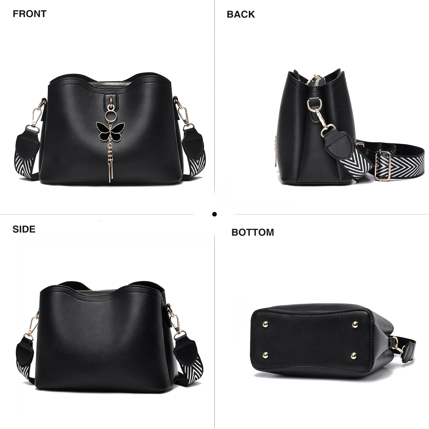Ez a táska nem csak praktikus, hanem nagyon stílusos is. A letisztult vonalakat az arany pillangós fém medál egészíti ki, így nőies és egyedi tapintású. Három klasszikus színben – fekete, törtfehér és zöld – kapható, így minden ruhához könnyedén passzol.