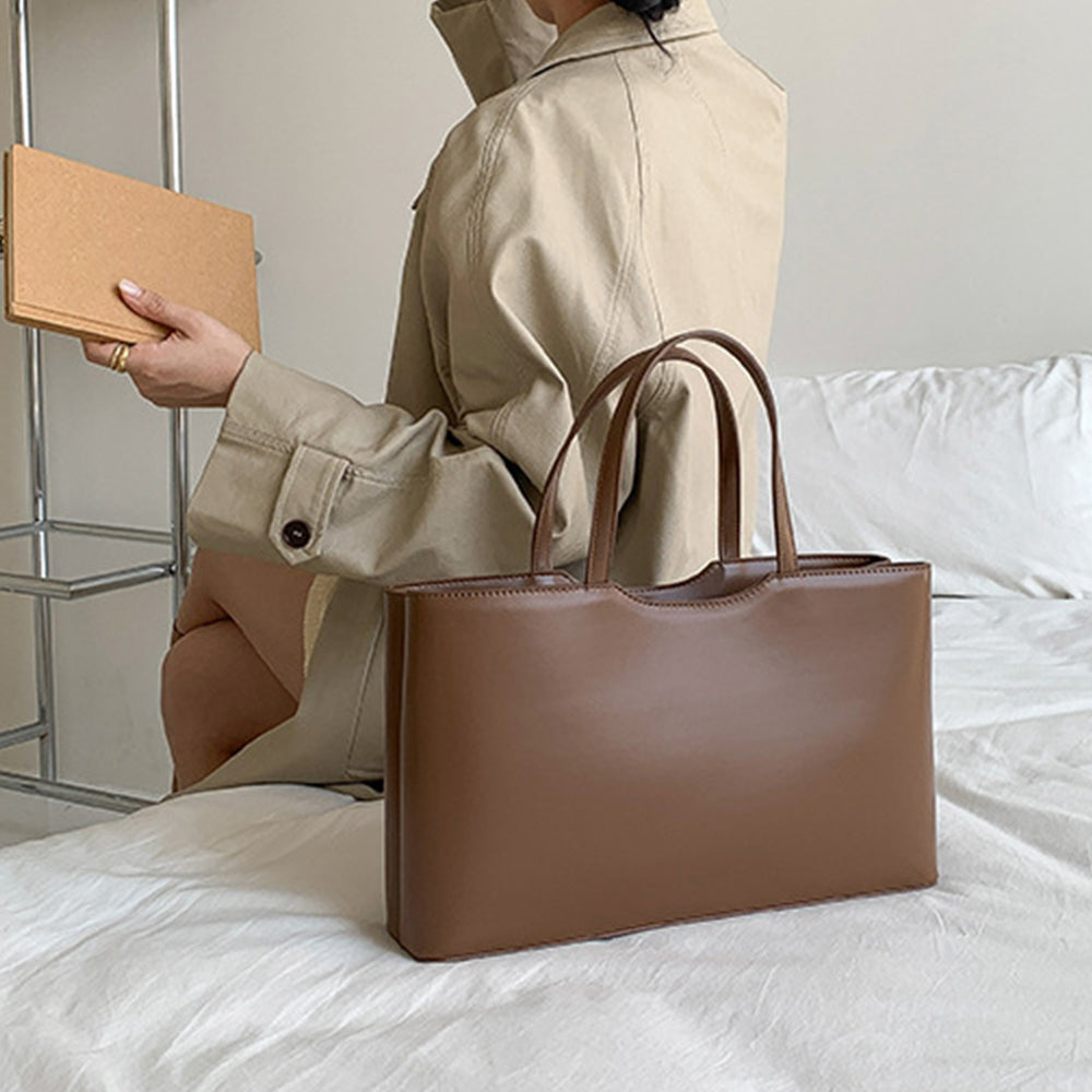 A Dollcini koreai stílusú női kézitáska a minimalista divat és a praktikum tökéletes ötvözete. Prémium minőségű, vízálló műbőrből készült, amely tartós és könnyen tisztítható. Tágas belső rekesze elegendő helyet biztosít A4-es dokumentumoknak, iPadnek, kulacsnak és mindennapi kiegészítőknek. Egyszerű, elegáns formája és kényelmes fogantyúi miatt ideális választás munkába, iskolába, vásárláshoz vagy utazáshoz.