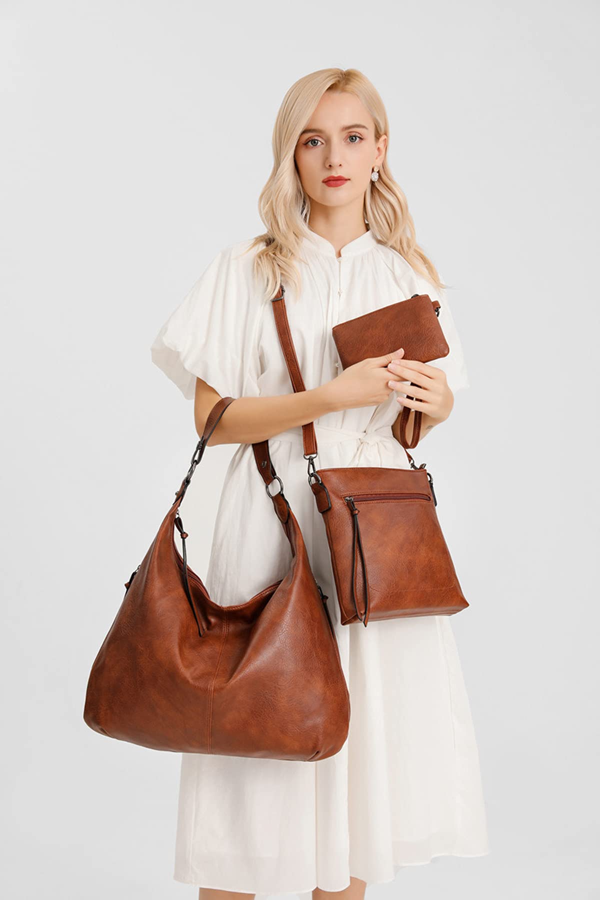Méret: Hobo táska: 48 x 35 x 9 CM; Crossbody táska: 24 x 25 x 5.5 CM; Pénztárca: 17 x 12 x 1 hüvelyk. A kereszttartó pánt maximális állítható hossza 103 cm.