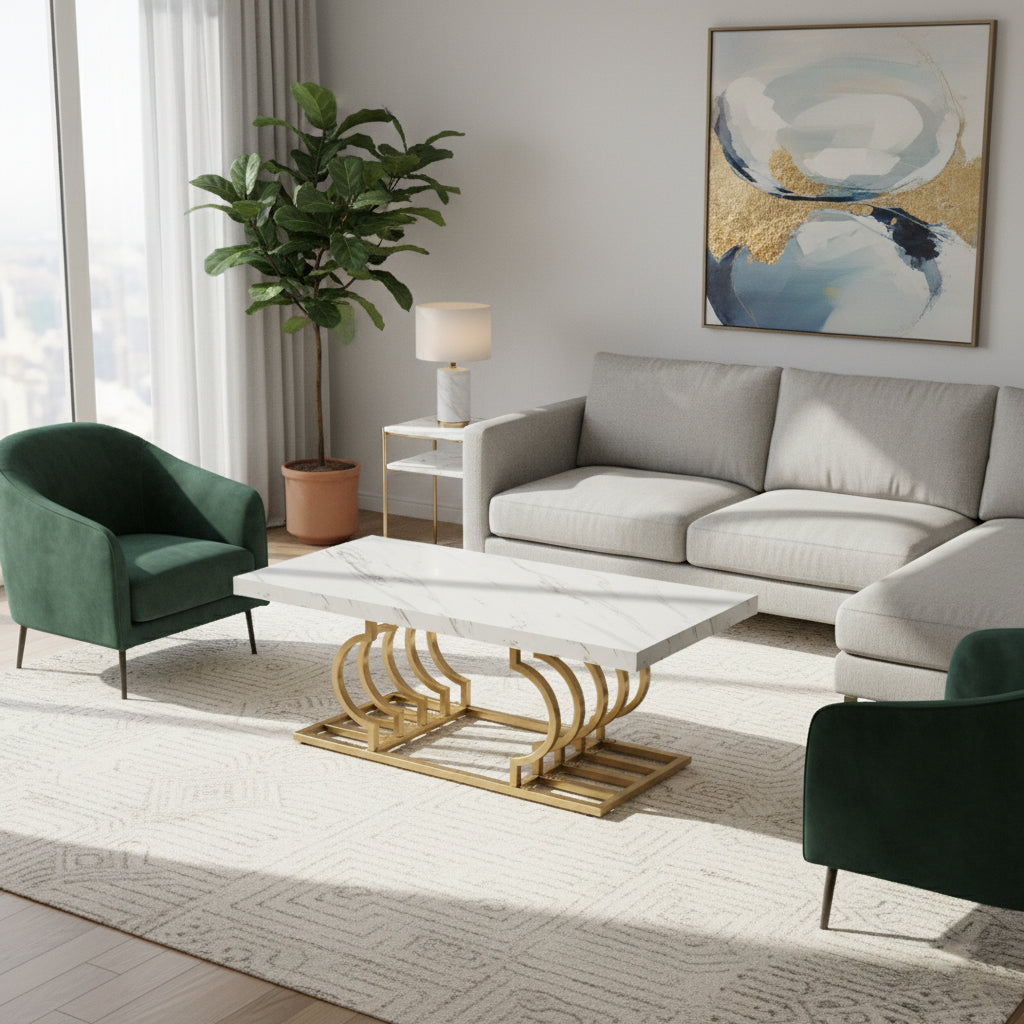 Dollcini Otthon Márvány Hatású Dohányzóasztal Egyedi Arany Lábbal